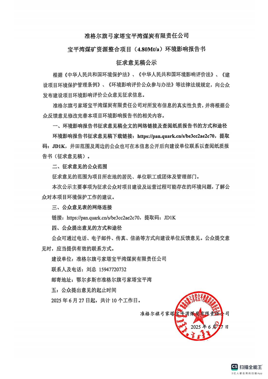 寶平灣煤礦環(huán)評征求意見稿PDF下載