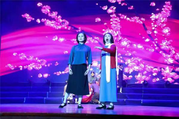 根據黨的百年奮斗征程,整場演出共分為五大篇章?!独C紅旗、紅梅贊》在第一篇章《紅日照東方》中出場,它情景再現了江姐在得知新中國成立這一振奮人心的消息后,扯下紅花被面,與獄友們縫制五星紅旗的激動場面,追憶了江姐等共產黨人視死如歸、鋼鐵般的意志。本次活動共在鄂爾多斯恰特、泊江海子煤礦、塔拉壕煤礦進行了3個場次演出,豐富多彩的文藝節目為現場觀眾獻上了一場極具震撼力的視聽盛宴。